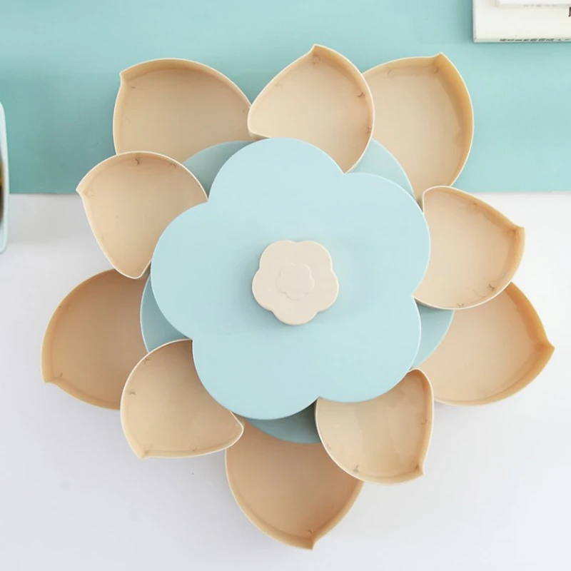 3.Creative petal shape, like flower bloom, beautiful and stylish, rotating open cover design, conform to fashion and trend. Partition design, convenient for sorting and storage, save space when stacked, or can be used as a desktop storage tray.