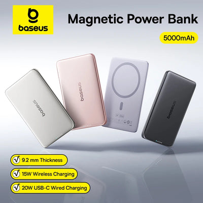 Baseus PicoGo AM41 5000mAh Magnetic Power Bank – 15W Wireless + 20W Fast Charging, Ultra-Slim Card-Size Portable Charger