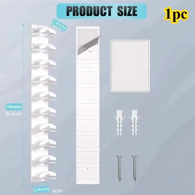 🧢 Stores up to 10 hats individually 🪝 Hang by hat button or front display 📏 Vertical space saving wall design 🎨 Modern minimalist look for any room 🧱 Adhesive or screw installation options 🏠 Perfect for closets entryways bedrooms