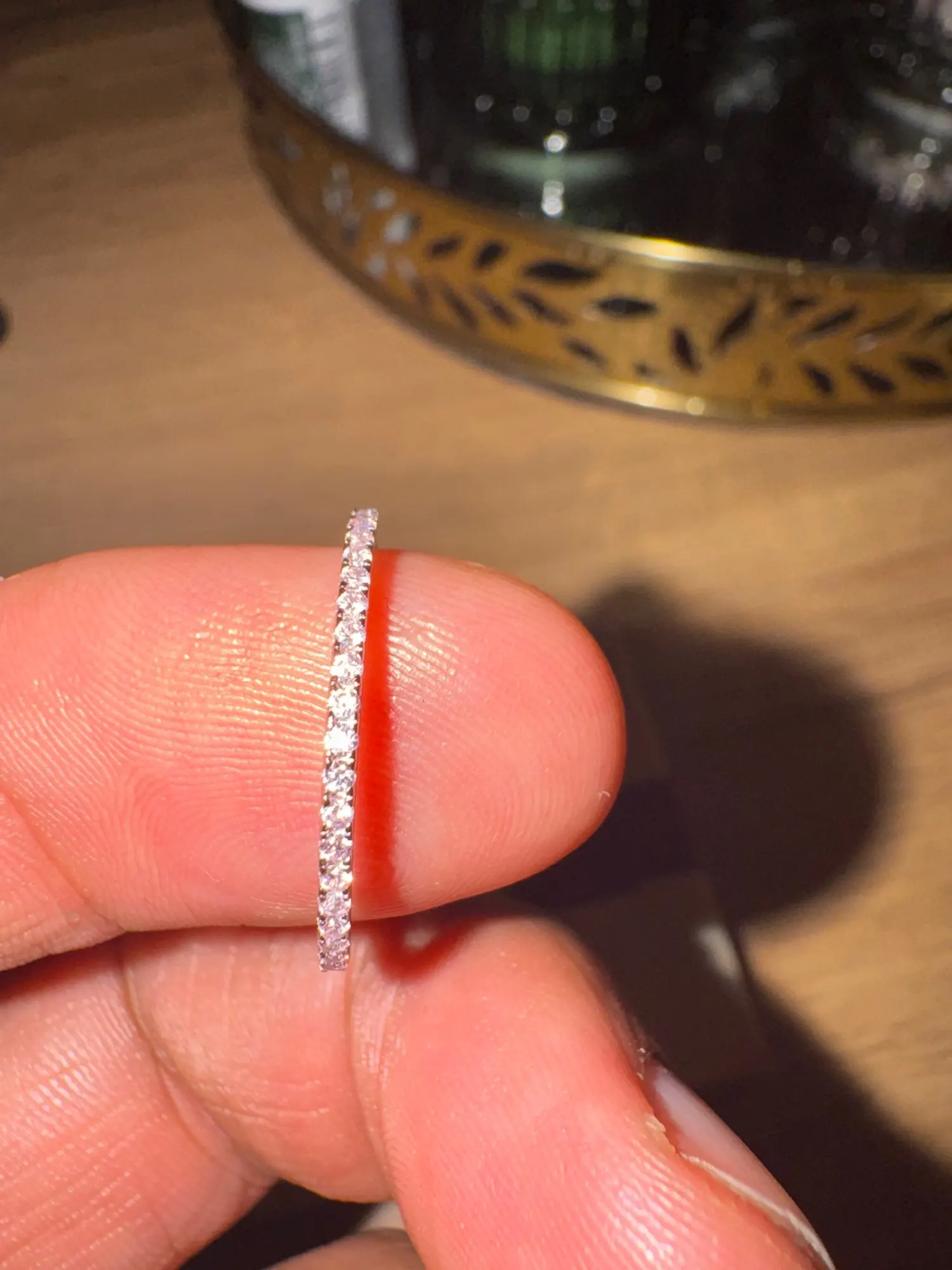 ✨ Product Highlights: 🔹 Material: 100% 925 Sterling Silver (Hypoallergenic) 🔹 Stones: High-grade AAAAA Cubic Zirconia — radiant brilliance 🔹 Plating: Gold plated for long-lasting shine 🔹 Design: Ultra-slim 0.15cm stackable band 🔹 Style: Wear solo or stacked for a luxury layered look 🔹 Occasion: Perfect for weddings, engagements, anniversaries, or daily elegance 🔹 Comfort Fit: Lightweight at only 1.2g — ideal for long-term wear 🔹 Setting: Full pave setting for maximum shine 🔹 Packaging: Includes a free velvet jewelry bag 🔹 Sizes: Available in US sizes 5–10