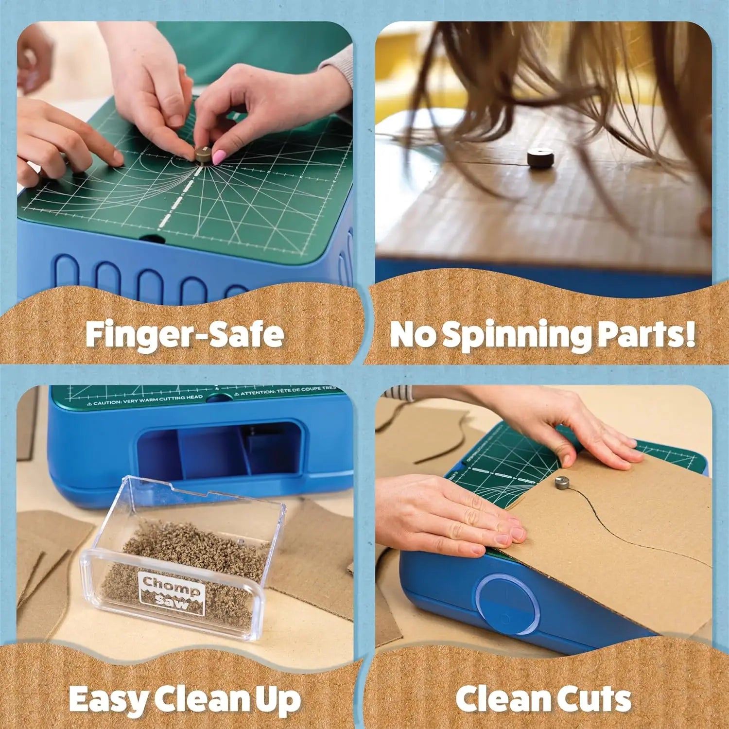 ChompSaw is the ultimate kid-safe power tool designed to let young creators cut cardboard safely while exploring imagination, engineering, and hands-on STEM learning.