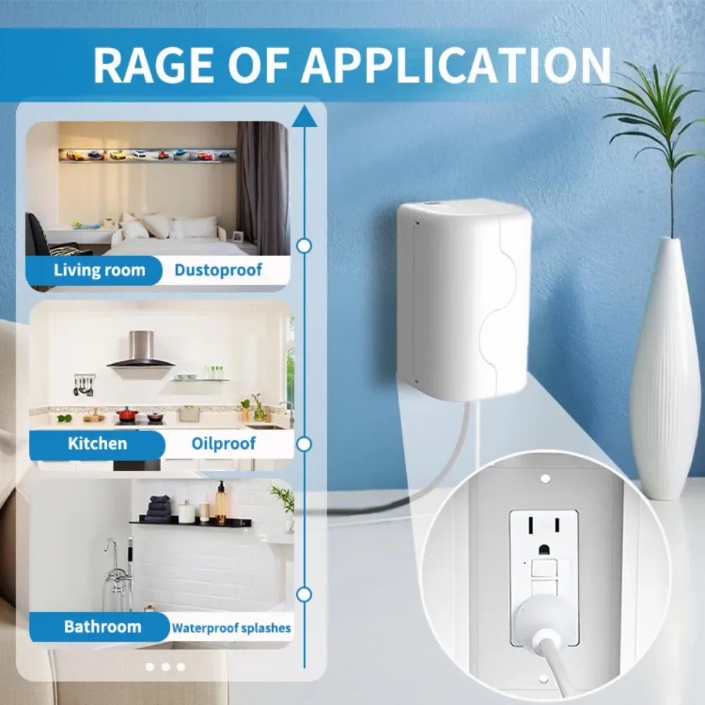 This dual-door childproof system ensures your outlets stay covered and secure, preventing accidental contact or unplugging. The durable ABS construction offers strong impact resistance, while the spacious interior fits larger chargers, adapters, and plugs with ease.